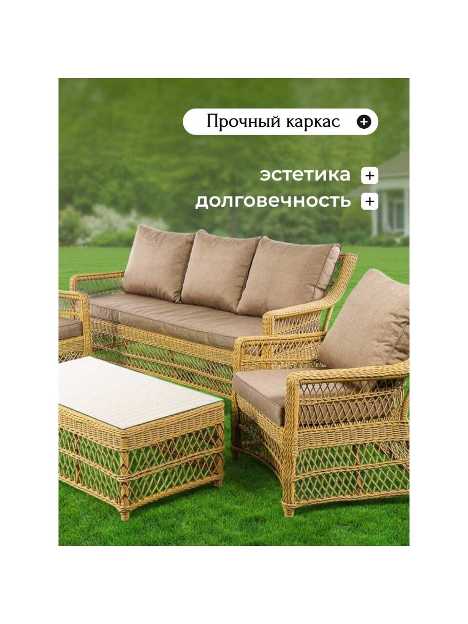 Комплект садовой мебели станет отличным дополнением для загородного дома или дачи. Благодаря своим качествам комплект отлично подойдет для постоянного использования на открытом воздухе с ранней весны до поздней осени. Мебель выполнена в изысканном дизайнерском решении, что позволяет ей гармонично вписываться в любое окружение.