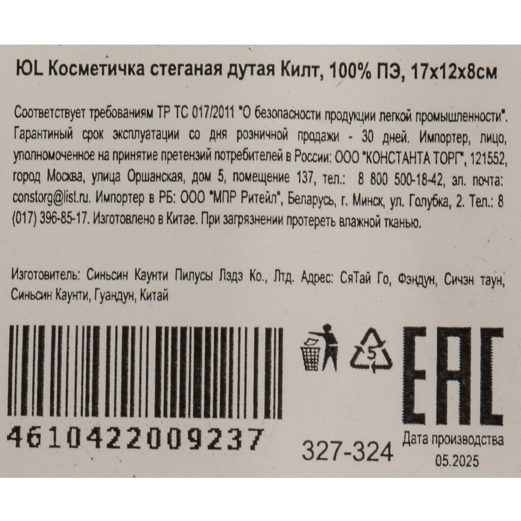 Косметичка стеганая дутая ЮниLook Килт 17х12х8 см — компактное хранение для косметики и аксессуаров, всегда под рукой. Лёгкая, стильная, прочная.