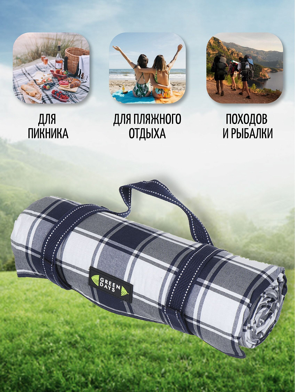 Вы можете приобрести «Коврик для пикника 150х135 см, акрил, с ручками, Green Days, Клетка, CA330014.01, синий» и другие товары в нашем интернет-магазине в Казани по низким ценам и с бесплатным самовывозом.