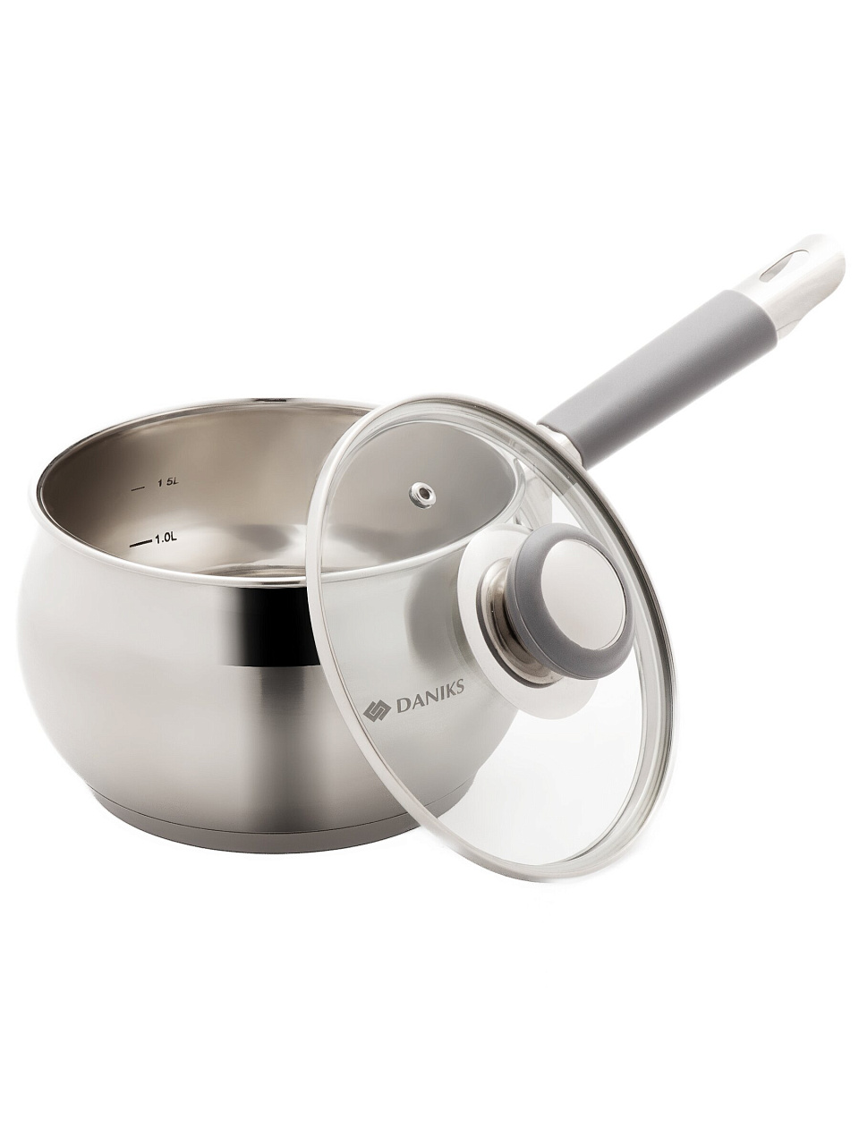 Ковш Daniks Модерн 2 л: нержавеющая сталь, стеклянная крышка и силиконовая ручка — идеальный выбор для индукционных плит и ежедневного использования.