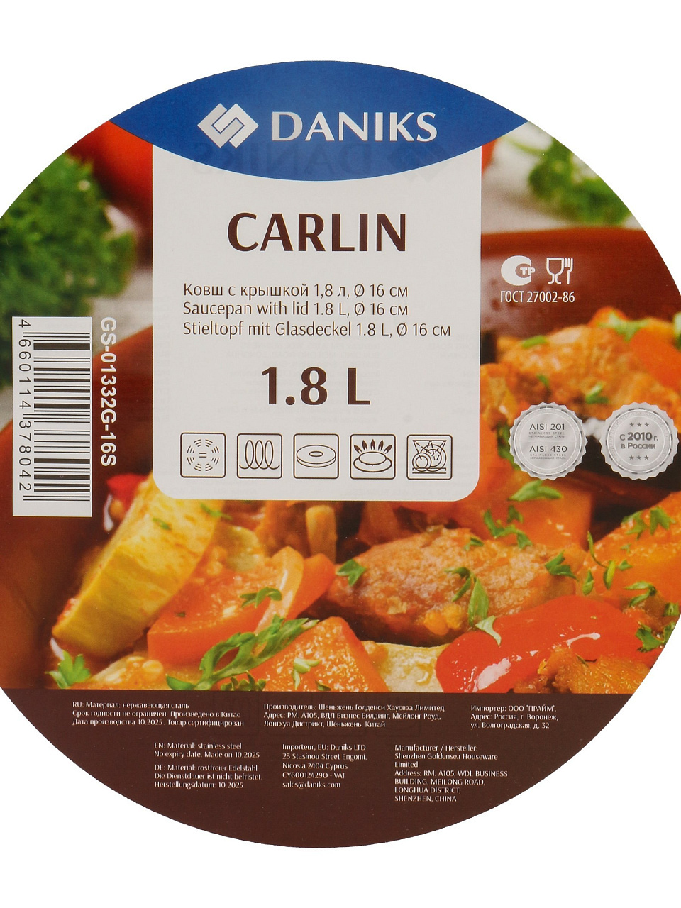 Вы можете приобрести «Ковш нержавеющая сталь, 1.8 л, крышка стекло, ручка нержавеющая сталь, индукция, Daniks, Карлин, GS-01332G-16S» и другие товары в нашем интернет-магазине в Астрахани по низким ценам и с бесплатным самовывозом.