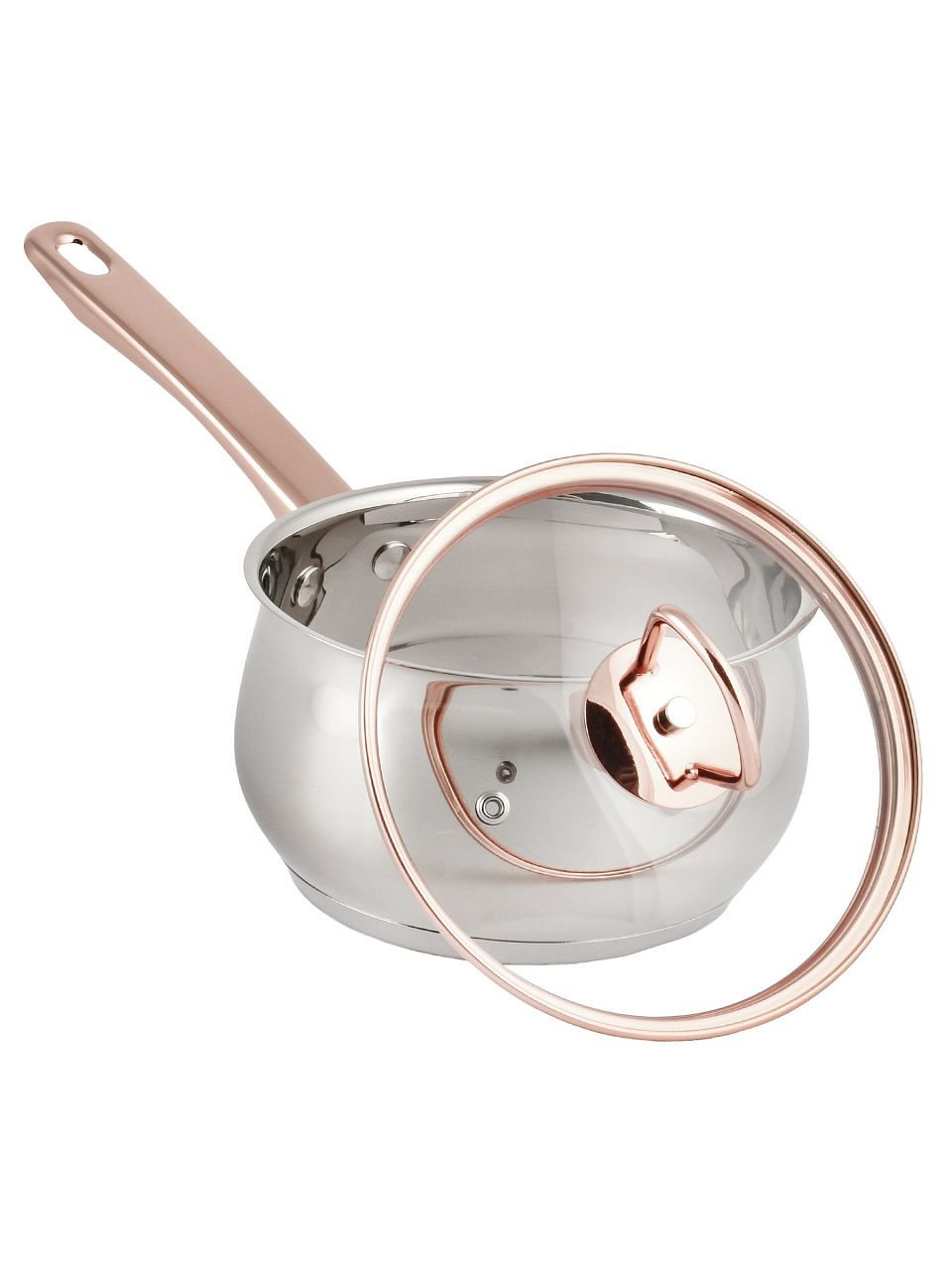 Корпус и ручка выполнены из нержавеющей стали марки 201, крышка — из прочного закаленного стекла. Внутри нет антипригарного или эмалированного покрытия, что упрощает уход и увеличивает срок службы.