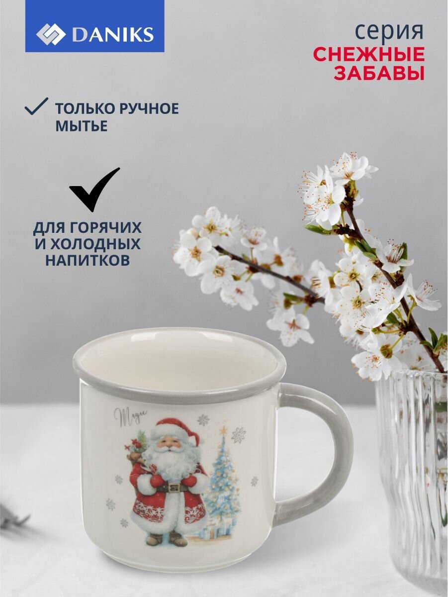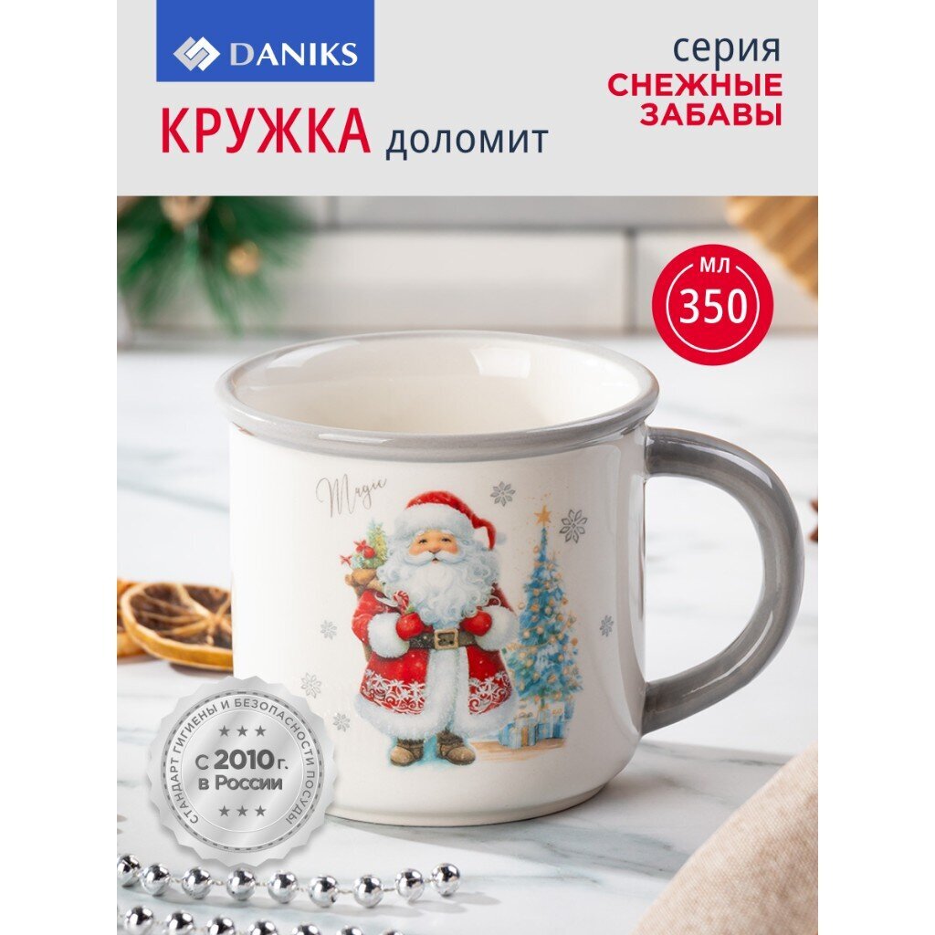 Кружка доломит 350 мл Daniks «Снежные забавы» — идеальный подарок на Новый год: зимний дизайн, подарочная упаковка, универсальный объём для дома и офиса.