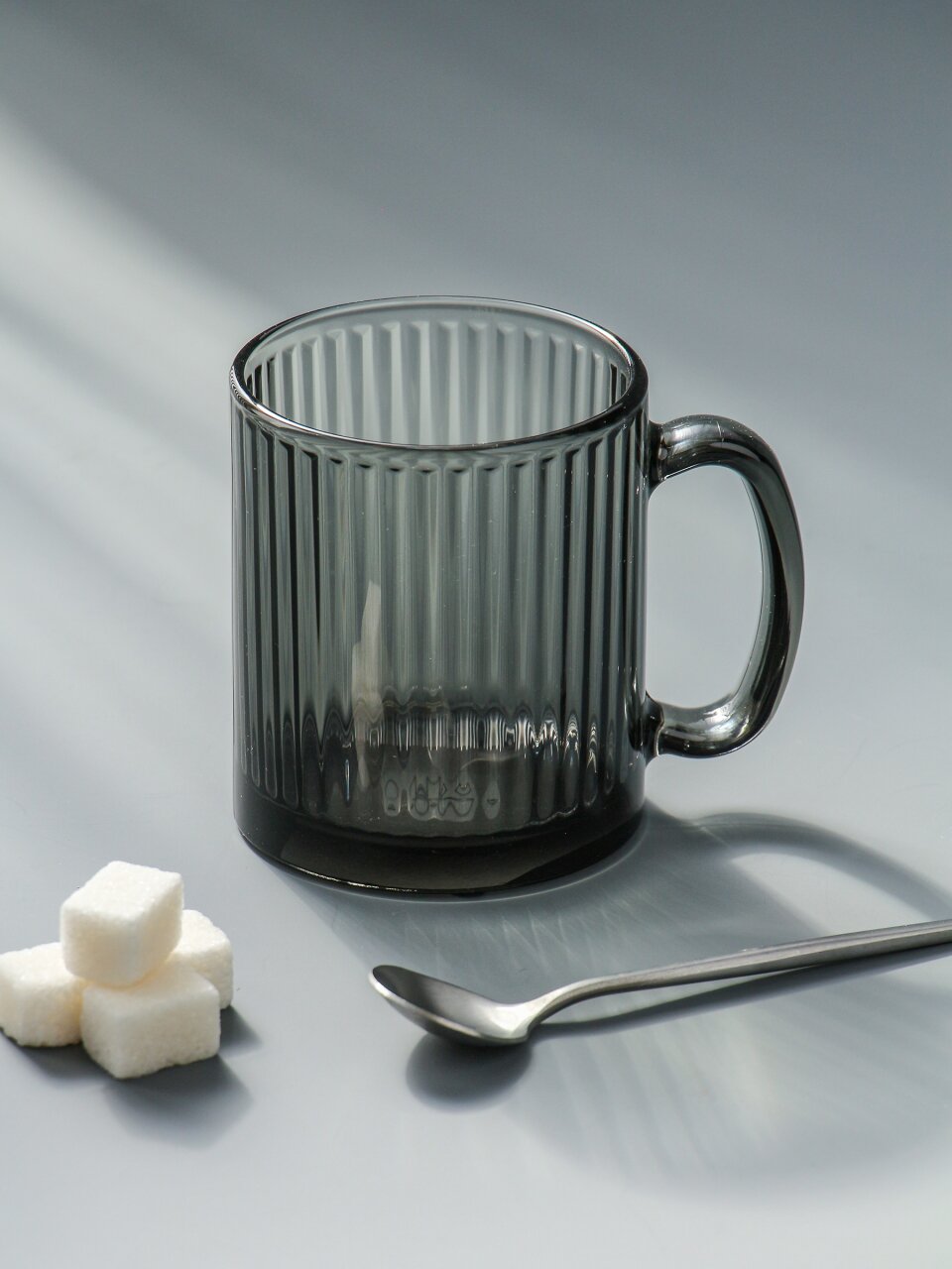 Стеклянная кружка Чайная Вертикаль 320 мл, графит — стильное решение для дома и офиса: удобно держать, легко мыть, подходит для чая, кофе и напитков. Идеально для подарка и ежедневного использования.