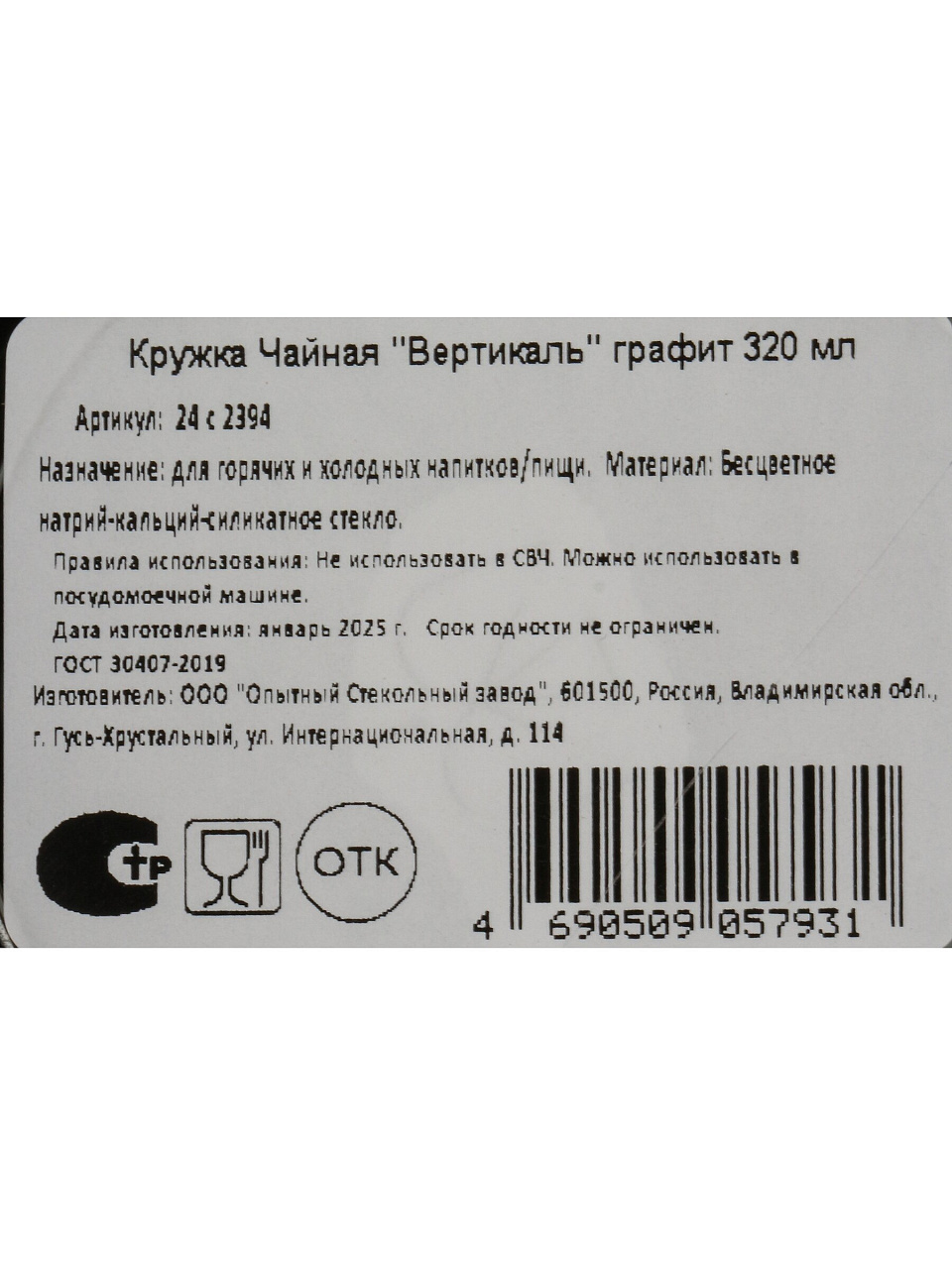 Вы можете приобрести «Кружка стекло, 320 мл, Чайная Вертикаль, ОСЗ, 24с2394, графит» и другие товары в нашем интернет-магазине в Железногорске по низким ценам и с бесплатным самовывозом.