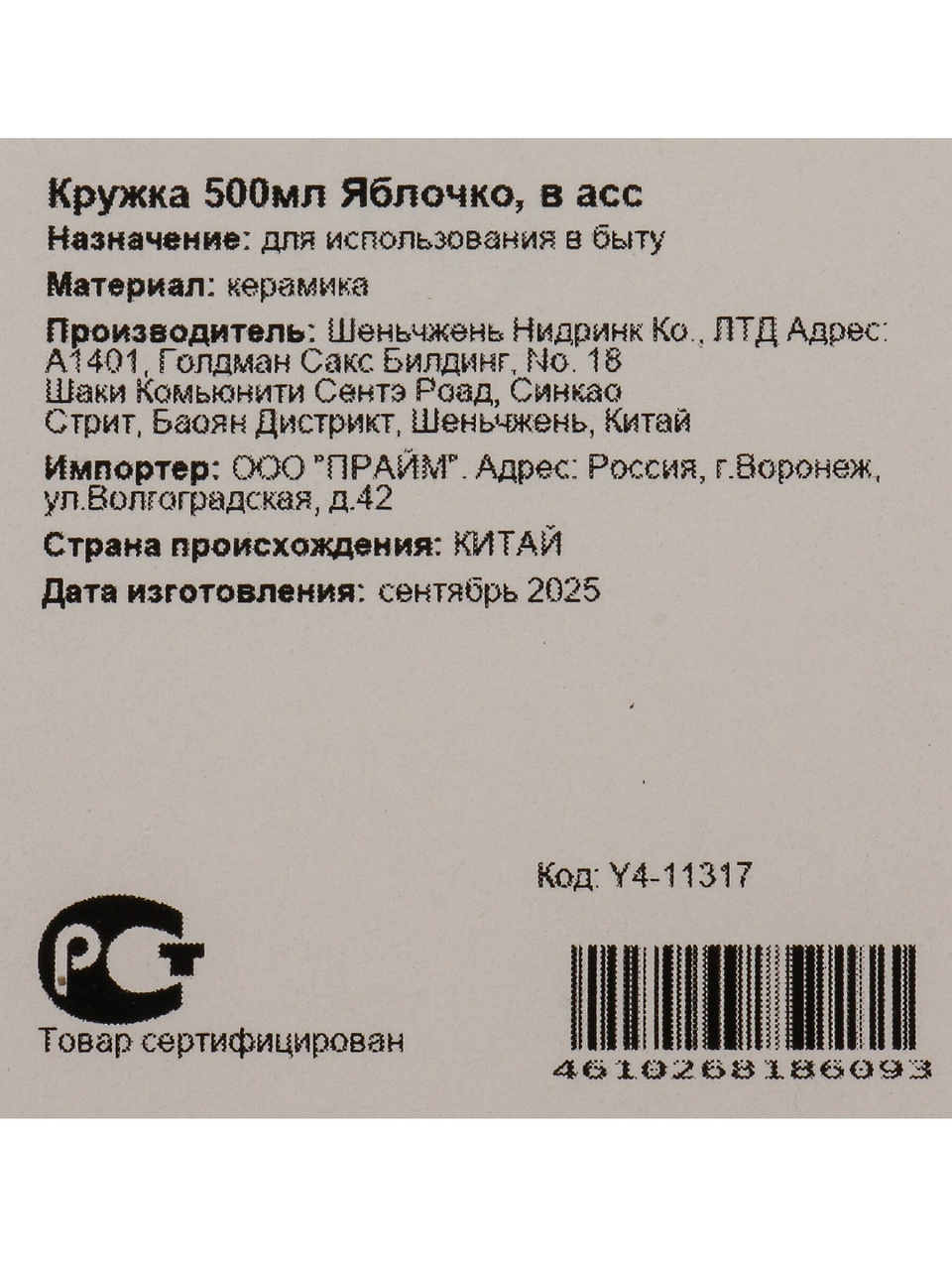 Вы можете приобрести «Кружка керамика, 500 мл, Яблочко, 11.8Х7.5 см, Y4-11317, в ассортименте» и другие товары в нашем интернет-магазине в Липецке по низким ценам и с бесплатным самовывозом.