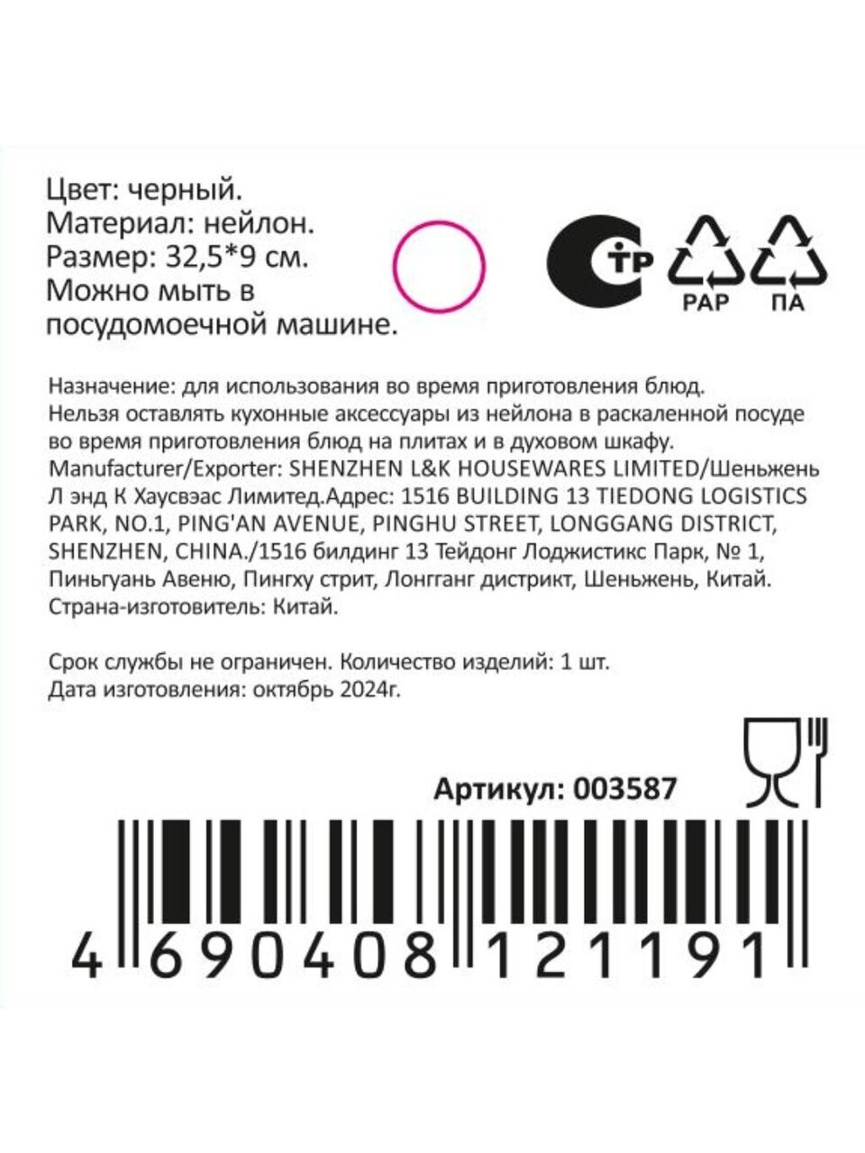 - Безопасность для антипригарных поверхностей: нейлоновая лопатка не царапает сковороды и кастрюли.