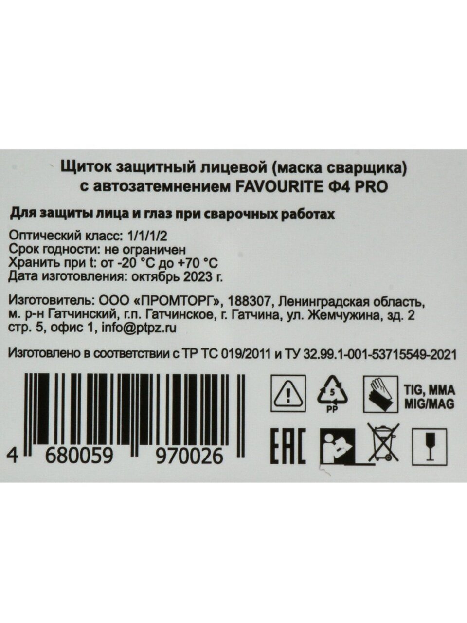Оформите заказ на маску сварочную автозатемнение Favourite PRO Ф4 — надёжная защита глаз, выгодные цены и быстрая доставка по России. Сделайте работу безопаснее уже сегодня!