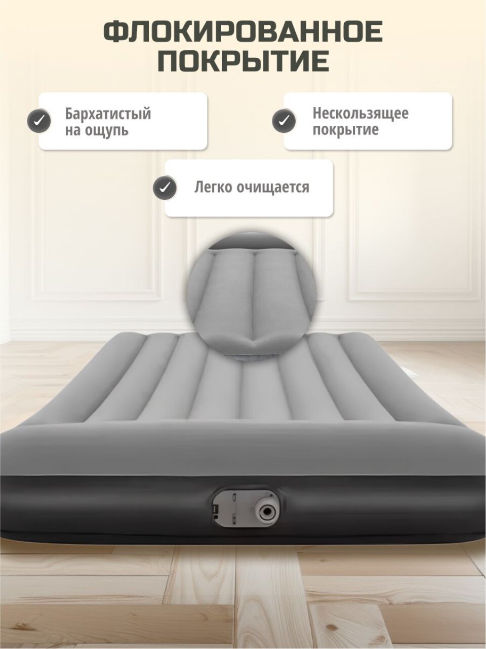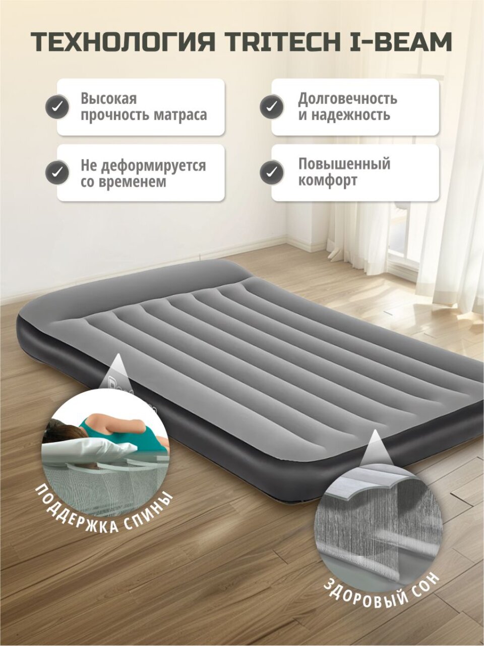 Надувной матрас Bestway обеспечивает комфортный и здоровый сон в любой ситуации. Изготовленный из прочного флокированного винила, он имеет особую конструкцию, которая сохраняет свою форму даже при неравномерной нагрузке.