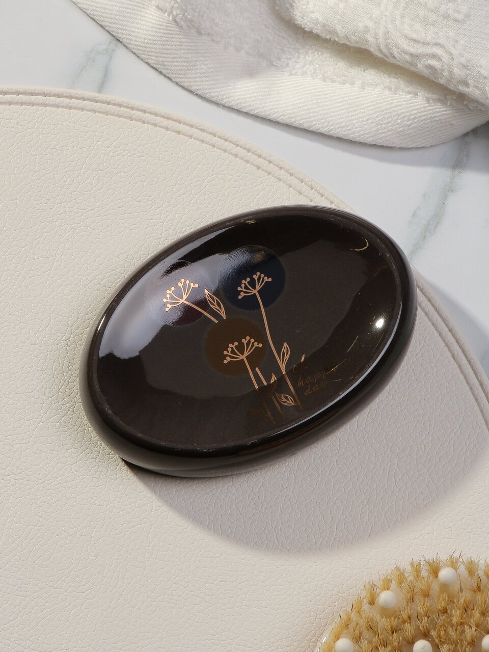 Если вы ищете, какую мыльницу выбрать для дома или дачи, обратите внимание на эту модель: она не занимает много места, но вмещает стандартный кусок мыла. Керамика не реагирует на влагу и не деформируется, а универсальный серый цвет с цветочным принтом подойдёт к любому стилю санузла. Использование такой мыльницы — это не только про удобство, но и про заботу о гигиене: вода не скапливается, мыло не размокает.