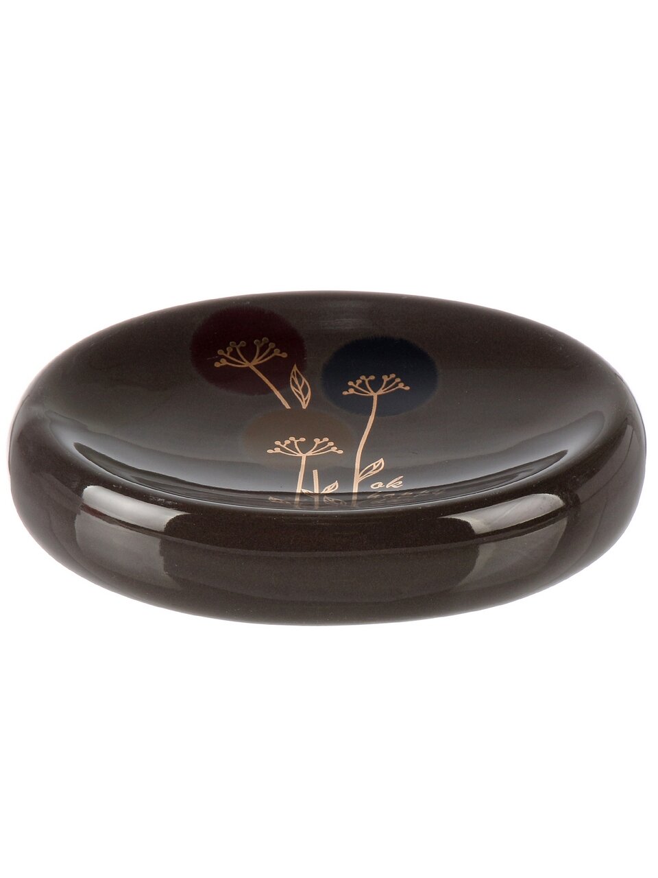 Мыльница настольная из керамики с цветочным принтом на сером фоне Y4-9867: стильный акцент для ванной, долговечность и идеальный размер для любого интерьера.