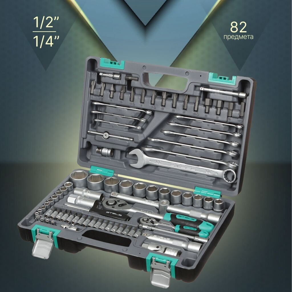 Вы можете приобрести «Набор слесарных инструментов Stels, 14105, 1/2", 1/4", сталь, кейс, 82 предмета» и другие товары в нашем интернет-магазине в Борисоглебске по низким ценам и с бесплатным самовывозом.