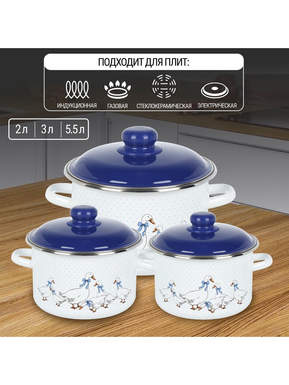 Набор эмалированных кастрюль 3 шт. (2, 3, 5,5 л) для индукции: долговечность, стиль и универсальность — идеальный выбор для дома и дачи