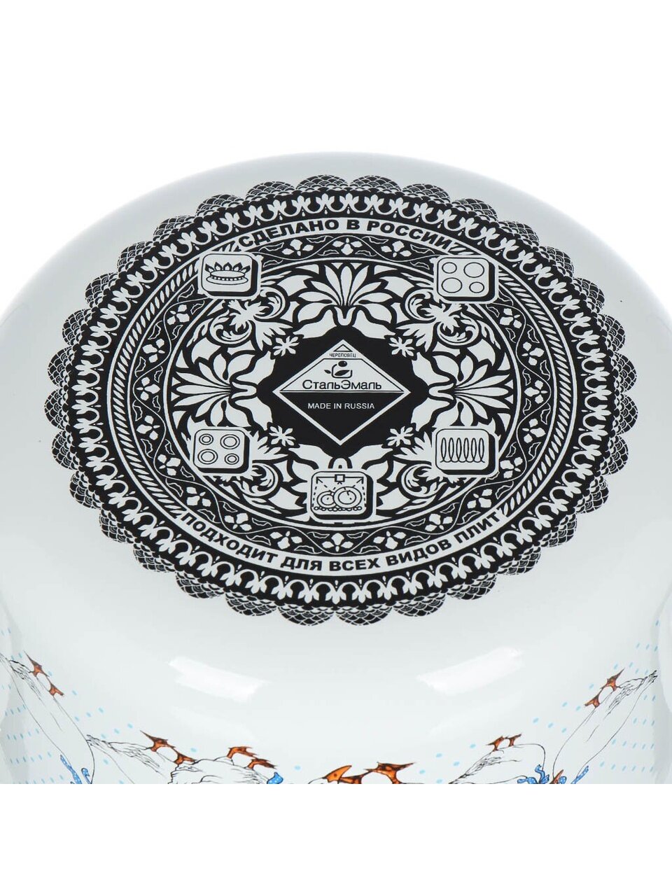 Набор посуды из эмалированной стали СтальЭмаль «Гуси» (артикул 6KB191M) — оптимальный выбор для тех, кто ищет, какую кастрюлю купить для индукционной плиты или как выбрать посуду для дачи. Эмалированная поверхность не вступает в реакцию с продуктами, легко моется и сохраняет яркость рисунка. В отличие от алюминиевых и пластиковых аналогов, эта посуда не меняет вкус блюд и устойчива к царапинам.
