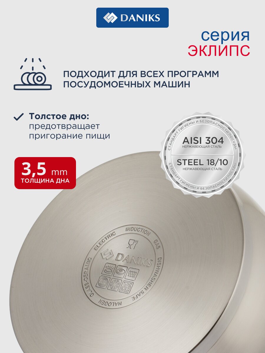 Набор посуды Daniks Eclipse 6 предметов из нержавеющей стали: универсальное решение для индукционных плит, дома и дачи — долговечно и выгодно.