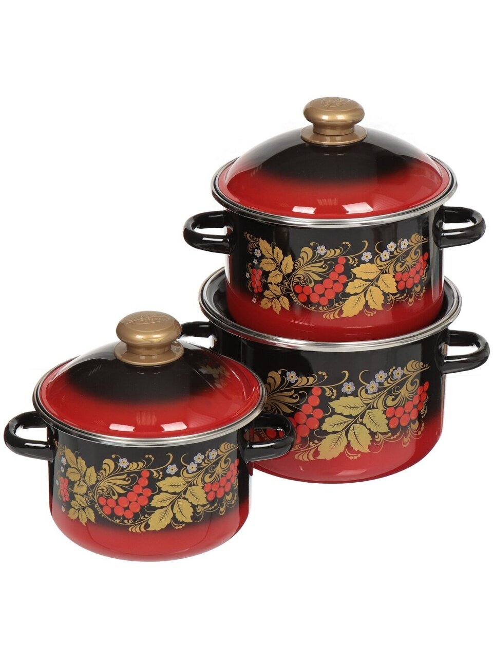 - Универсальный набор кастрюль из эмалированной стали — безопасно для здоровья, легко мыть, подходит для всех плит