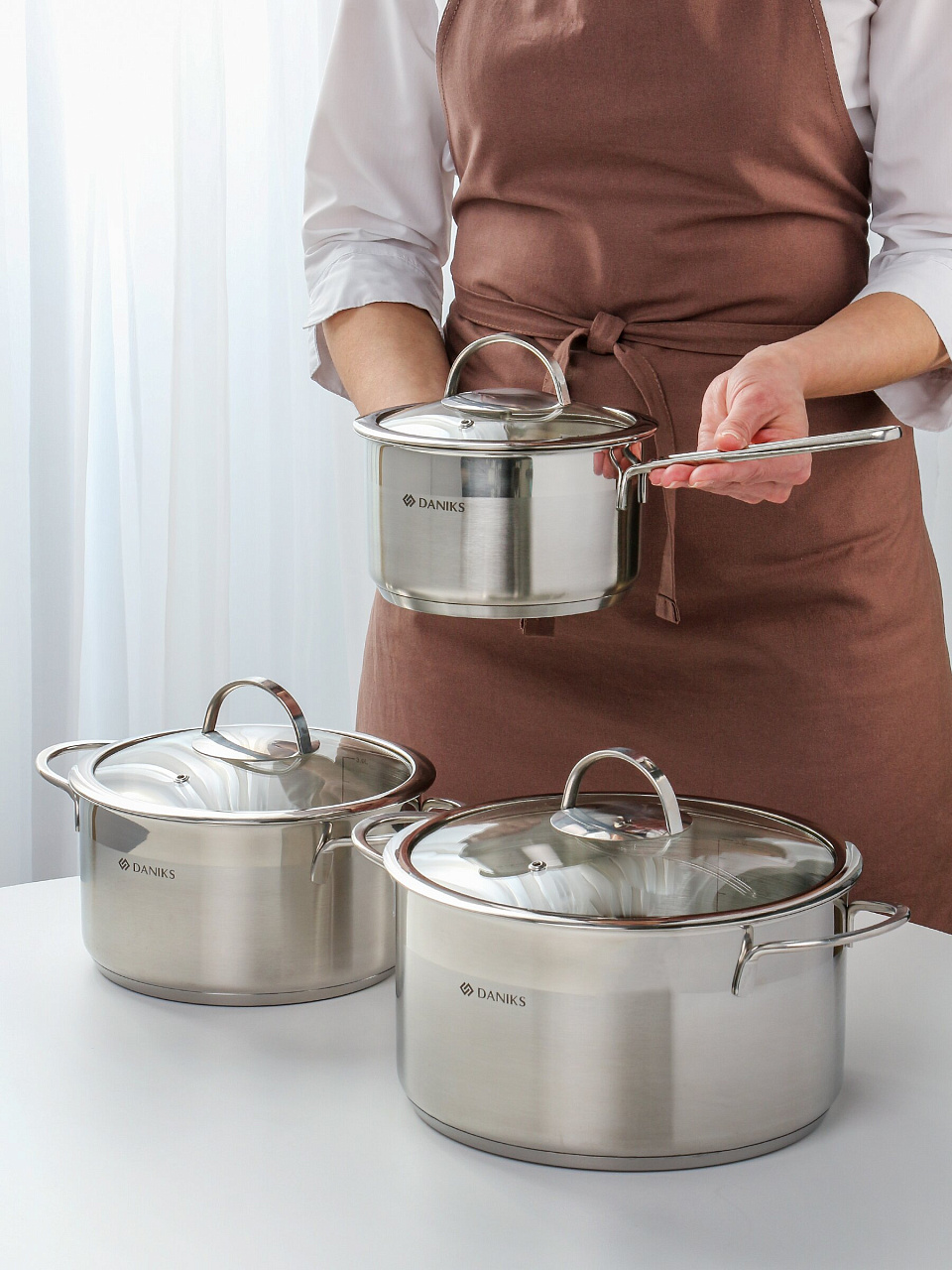 Часто спрашивают, как выбрать набор посуды для индукционной плиты или чем отличается этот комплект от других. В отличие от аналогов из алюминия, нержавеющая сталь Daniks сохраняет вкус продуктов, не деформируется при нагреве и рассчитана на долгий срок службы. Специальное дно подходит для индукционных, газовых и электрических плит — это удобно, если вы планируете использовать посуду в разных условиях. Если вы ищете, подходит ли набор для подарка, обратите внимание на стильный хромированный цвет и универсальность объёмов — такой комплект оценит любая хозяйка.