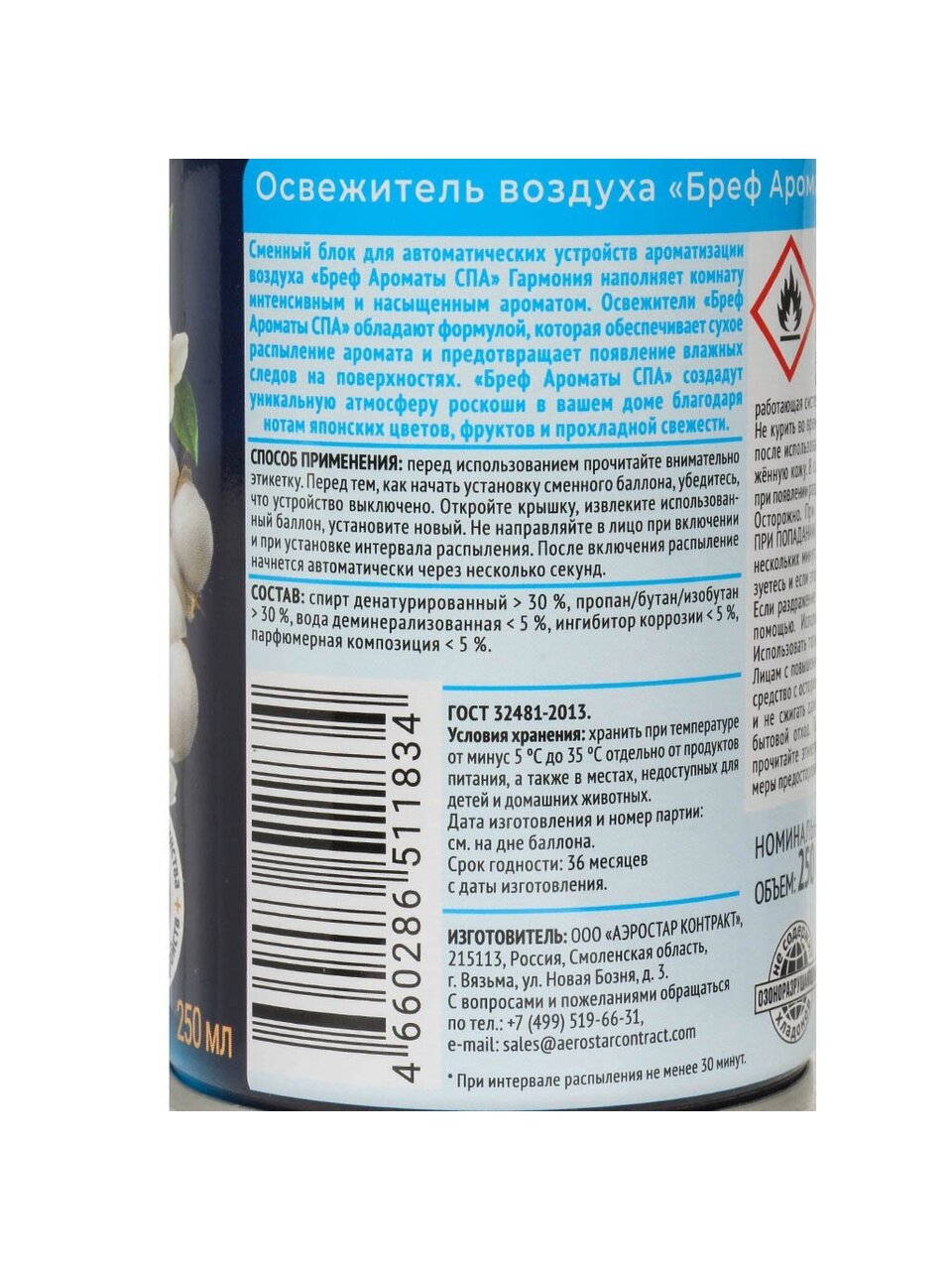 Вы можете приобрести «Освежитель воздуха Бреф, 250 мл, Ароматы СПА Гармония, сменный, сухое распыление» и другие товары в нашем интернет-магазине в Брянске по низким ценам и с бесплатным самовывозом.
