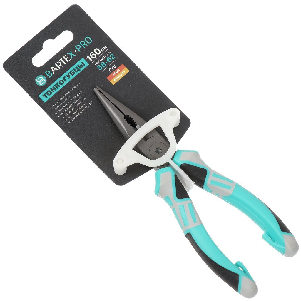 Тонкогубцы – это разновидность пассатиж с длинными и зауженными губками. Инструмент предназначен для выполнения более точных операций, таких как сгибание или выравнивание проволоки, работа с соединительными колечками или кримпами. Тонкогубцы Bartex Pro Nature Эко идеально подойдут для манипуляций в труднодоступных местах, где необходим захват мелких деталей. Изготовлены из конструкционной стали, рукоятки выполнены из ударопрочного пластика.