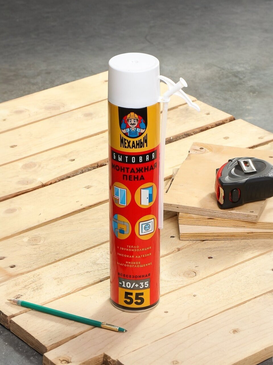 Пена монтажная Механыч 55 л — всесезонное решение для теплоизоляции и монтажа: высокая адгезия, быстрый результат, надёжность при любой погоде.