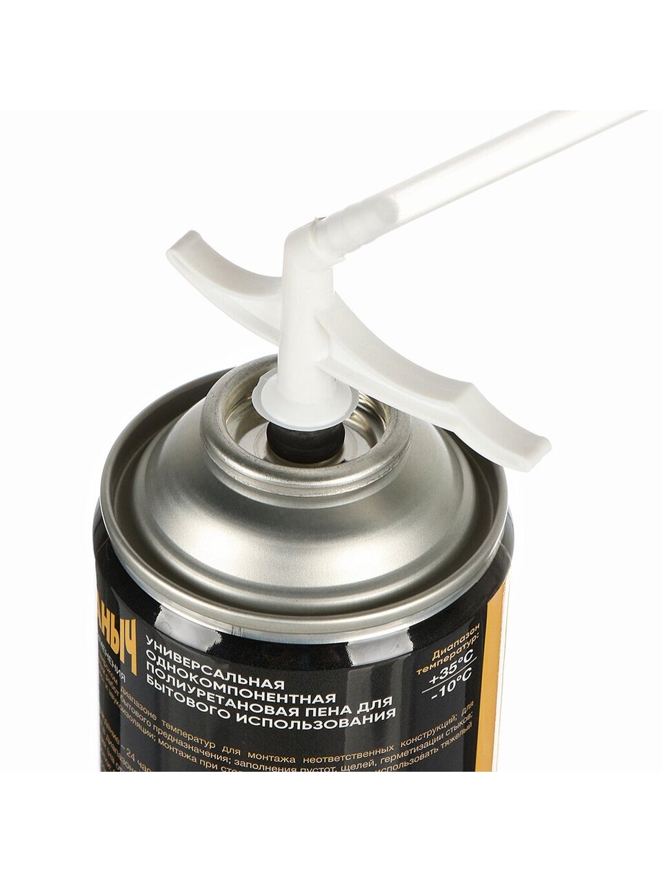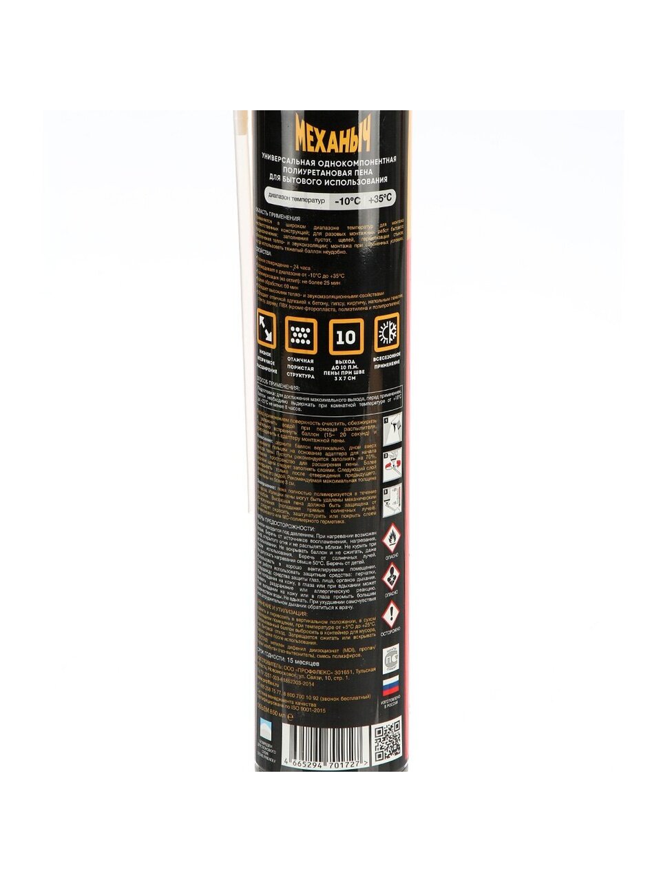 Всесезонная монтажная пена Механыч работает при температуре от -10°C до +35°C, что позволяет использовать её для ремонта и утепления даже зимой, не теряя прочности и адгезии.