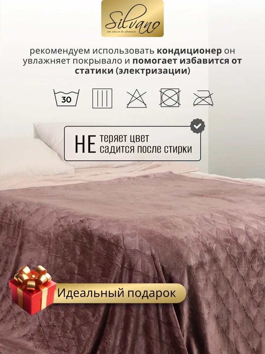 Плед 200х220 см — оптимальный евроразмер для стандартных и больших двуспальных кроватей, полностью закрывает спальное место и подходит для семейного отдыха.