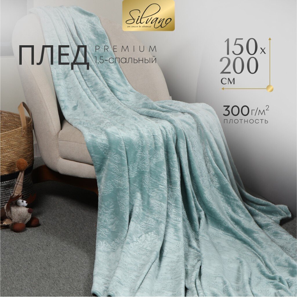 Плед 1.5-спальный 150х200 см велсофт жаккард Silvano Fresco голубой — тёплое решение для дома: мягкость, лёгкость, стильный узор по доступной цене.