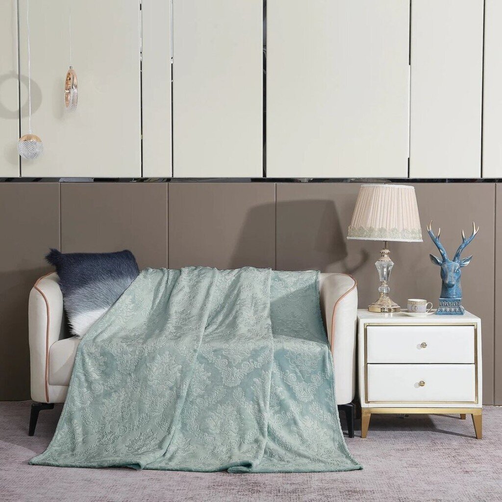 Плед размером 150х200 см идеально подходит для 1.5-спальной или односпальной кровати, а также для использования на диване. Материал — велсофт жаккард, плотность 270 г/м², короткий ворс.