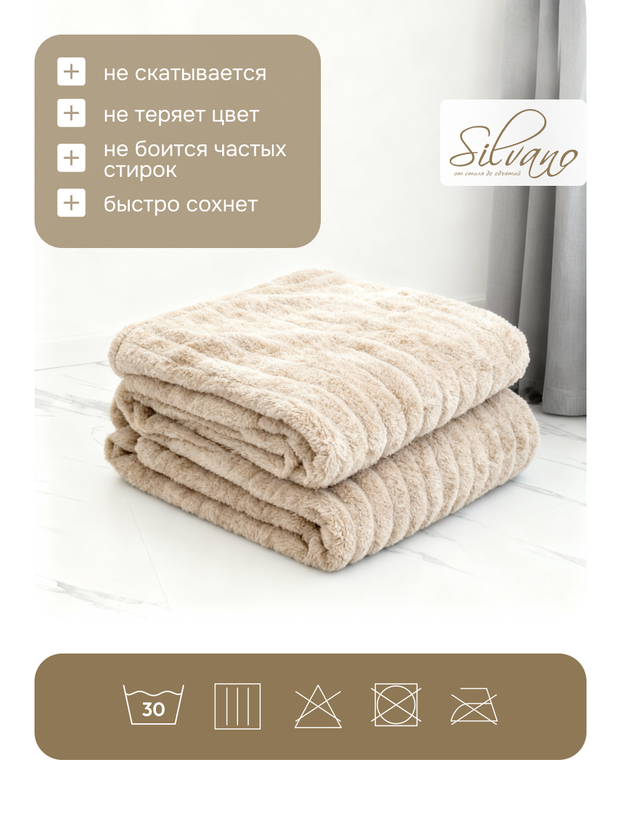 Часто спрашивают, какой плед лучше выбрать для спальни или гостиной, чтобы он был универсальным и не терял внешний вид. В отличие от хлопковых аналогов, велсофт не мнется, не выцветает и отлично держит форму. Плед Silvano подходит для использования как покрывало на кровать, как уютное одеяло для отдыха на диване или кресле, а также в качестве стильного подарка — его однотонный песочный цвет и лаконичный дизайн легко впишутся в современный интерьер. Если вы ищете, чем отличается велсофт от микрофибры, — велсофт более пушистый и теплый, но при этом не электризуется и не скользит.