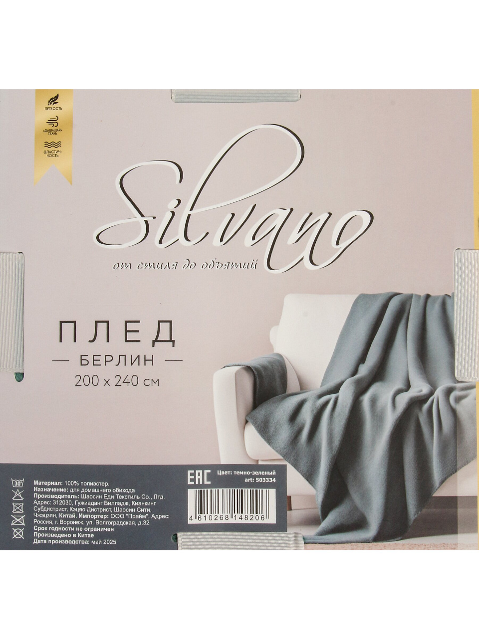 Плед 200х240 см, микрофибра, 100%пэ, 280г, Silvano, Берлин, темно-зеленый