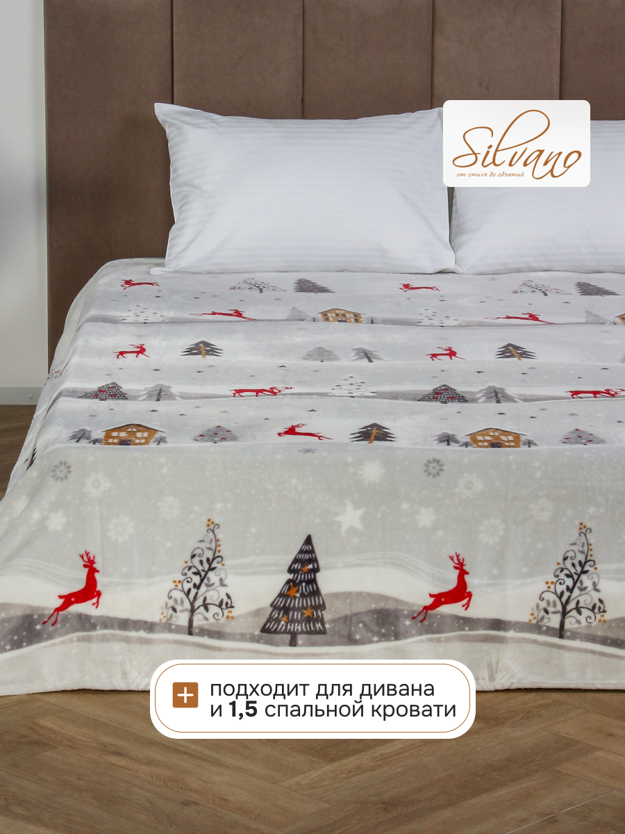Плед 1.5-спальный 150х220 см Silvano «Новогодняя сказка» — уют и тепло для зимних вечеров: мягкий велсофт, праздничный рисунок, выгодная цена для подарка.