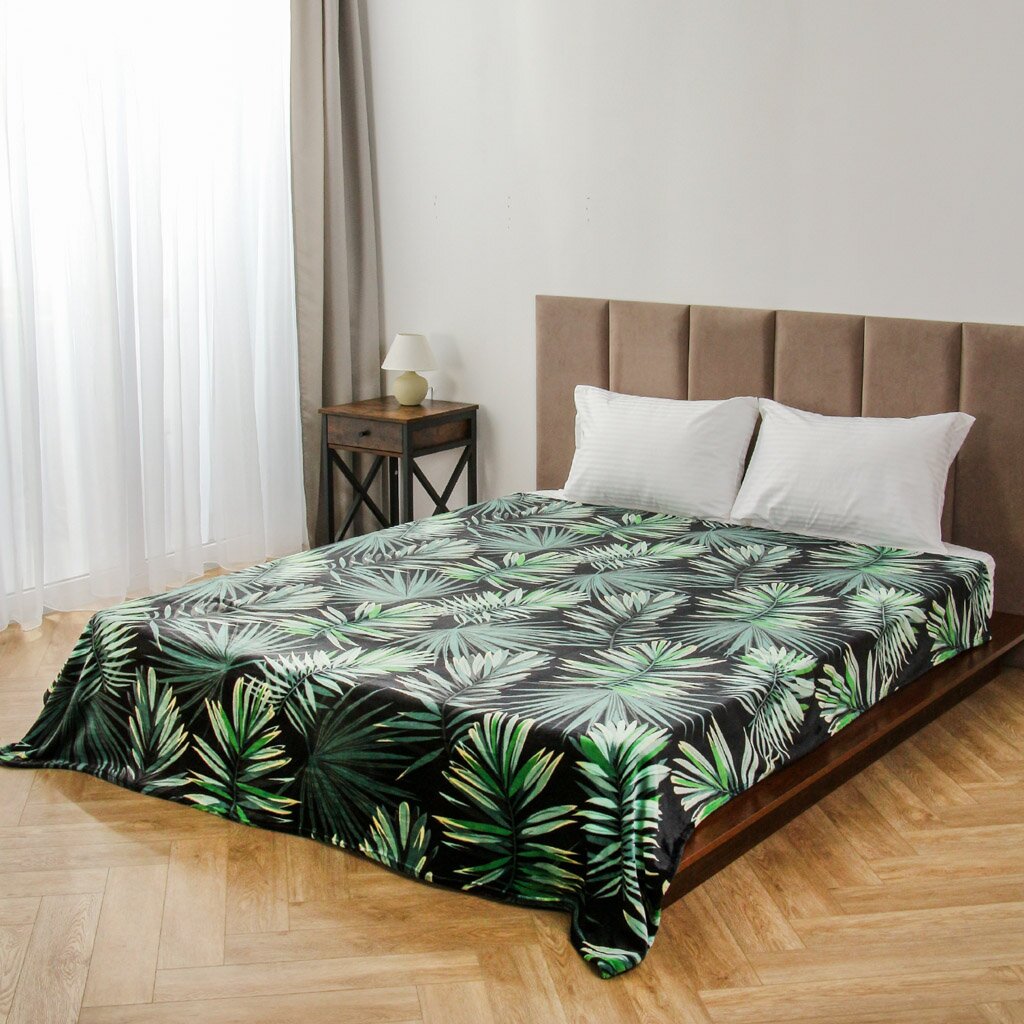 Плед 2-спальный Silvano «Пальмовый лист», 180х200 см — уют и стиль для вашего дома: мягкий велсофт жаккард, современный дизайн, универсальный размер.