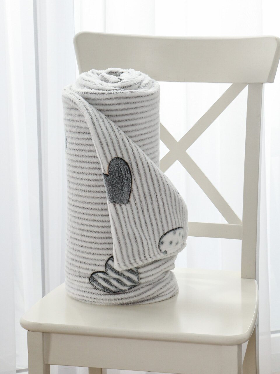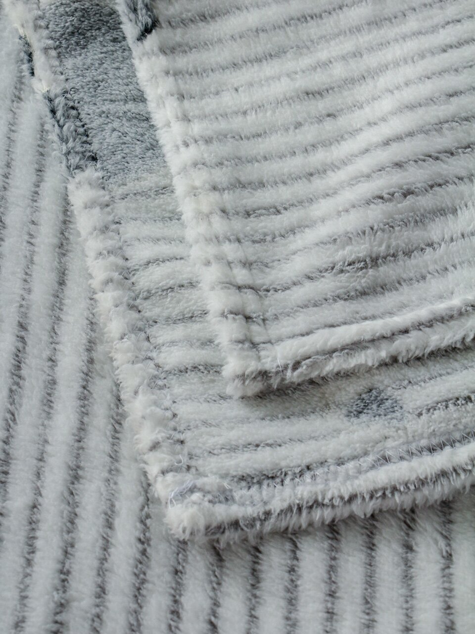 Плед выполнен из 100% полиэстера (велсофт жаккард), имеет короткий ворс, не требует сложного ухода: стирайте при 30–40°C, он быстро сохнет и сохраняет форму.