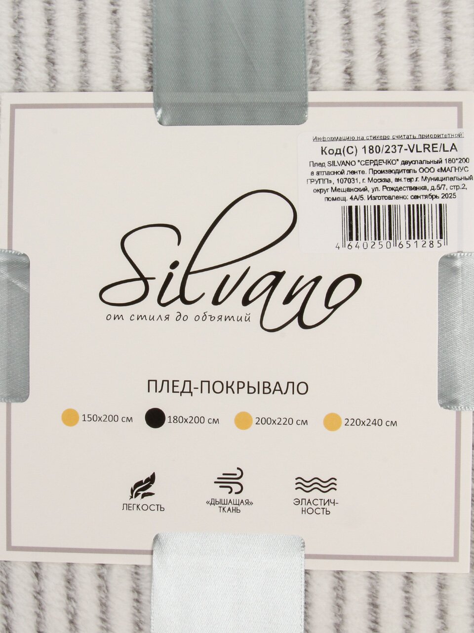 Плед Silvano отлично подходит для использования в доме, на даче или в качестве подарка ― его большой размер позволяет использовать его как покрывало или уютный аксессуар для вечеров. В отличие от аналогов с натуральными волокнами, велсофт жаккард не скатывается и не требует сложного ухода: достаточно стирки при 30–40 градусах. Подходит ли этот плед для детей? Он рассчитан на взрослых, но безопасен и для всей семьи. Как использовать плед? Просто расстелите на кровати или завернитесь в него во время отдыха.