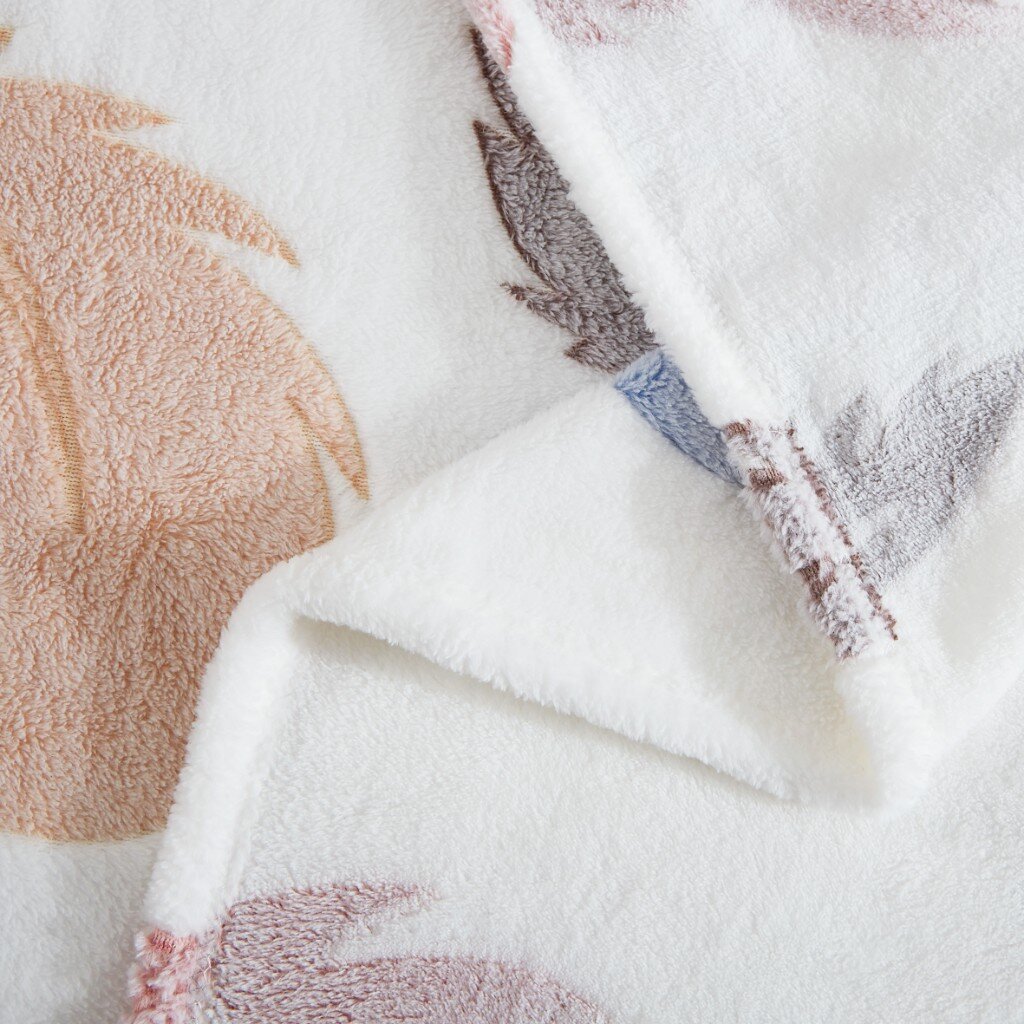Как выбрать размер пледа? Для двуспальной кровати или большого дивана оптимально подойдёт формат 180х200 см — такой плед полностью укроет двоих взрослых или станет уютным покрывалом. Благодаря стильному рисунку «Перо» и универсальному белому цвету, плед гармонирует с любым интерьером и станет отличным подарком. Подходит ли для аллергиков? Да, синтетический велсофт не вызывает раздражения, не накапливает пыль и легко очищается.