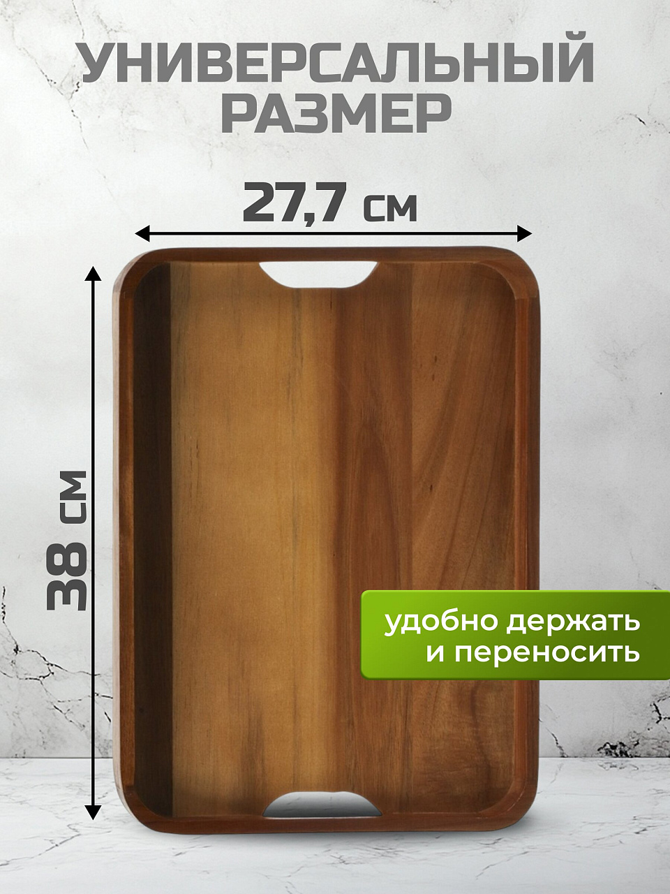 Поднос из акации 38х27.7 см с ручками — стильный и прочный аксессуар для сервировки, который подчеркнёт уют вашего дома или дачи. Универсальное решение для чая, кофе, закусок и оригинальных подарков.