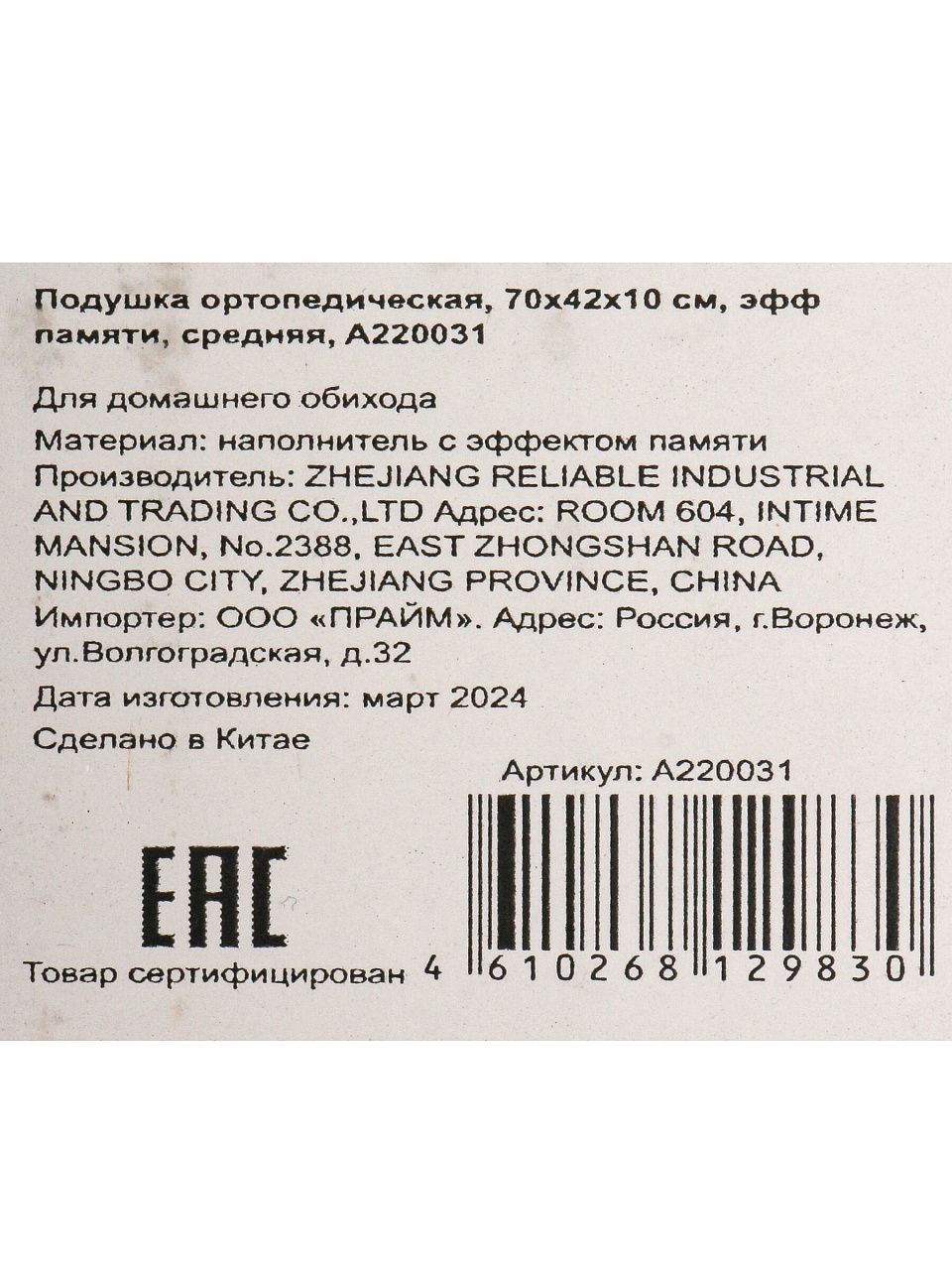 Вы можете приобрести «Подушка ортопедическая, 70х42х10 см, с эффектом памяти, средняя, A220031» и другие товары в нашем интернет-магазине в Таганроге по низким ценам и с бесплатным самовывозом.
