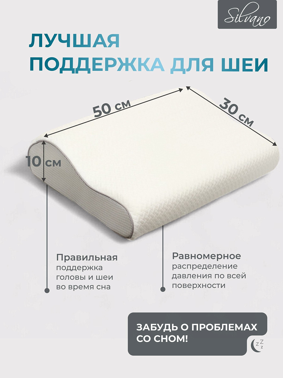 Ортопедическая подушка с эффектом памяти 50×30×10 см — мягкая поддержка для здорового сна, оптимальный выбор для дома, дачи и подарка. Обеспечьте комфорт и профилактику боли в шее уже сегодня.