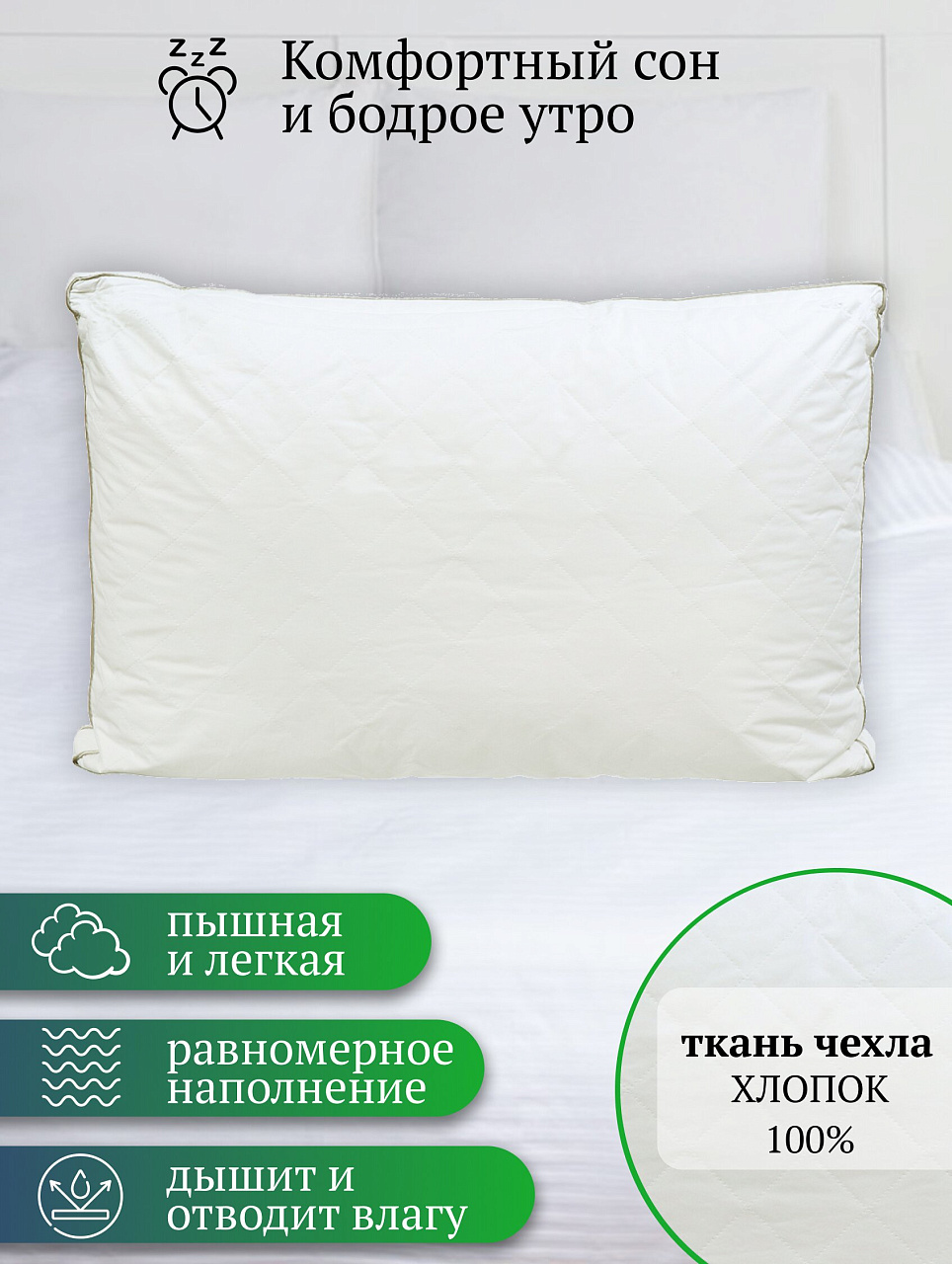 Подушка 50х70 см на лебяжьем искусственном пуху — это классика для ценителей мягкости и свежести. Такой наполнитель превосходит обычный синтепон по упругости и долговечности, не сбивается и отлично восстанавливает форму после сна. Хлопковый чехол с кантовой отделкой обеспечивает приятный контакт с кожей и не вызывает раздражения. Если вы ищете, какую подушку выбрать для ежедневного сна или для гостей, обратите внимание на этот вариант — он не вызывает аллергии, не впитывает запахи и легко стирается в машине.