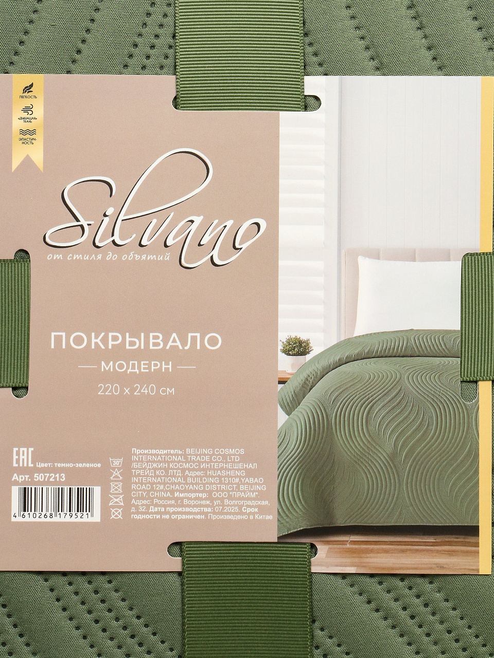 Вы можете приобрести «Покрывало евро, 220х240 см, 100% полиэстер, стеганое, Silvano, Модерн, темно-зеленое» и другие товары в нашем интернет-магазине в Обнинске по низким ценам и с бесплатным самовывозом.