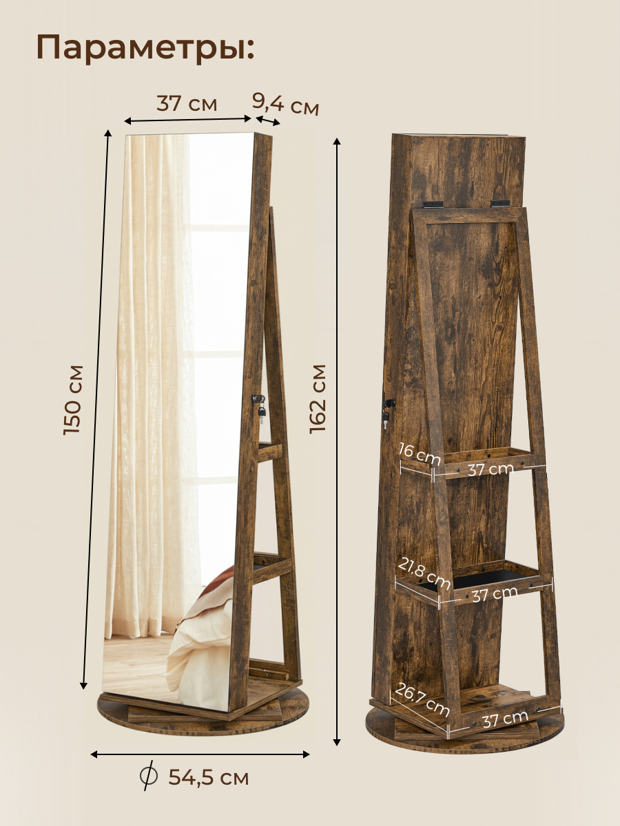 Вы можете приобрести «Зеркало-стеллаж напольное, ДСП+сталь, 54.5х54.5х162 см, коричневое, Songmics, Лофт, JJC007X01» и другие товары в нашем интернет-магазине в Тамбове по низким ценам и с бесплатным самовывозом.