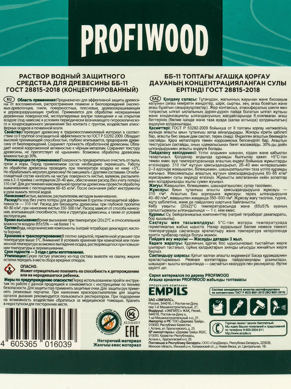 Антисептик PROFIWOOD ОгнеБио 2 гр.ББ-11 для дерева — надежная огне- и биозащита на 5 лет. Защитите дом от плесени и вредителей, экономя до 30%!