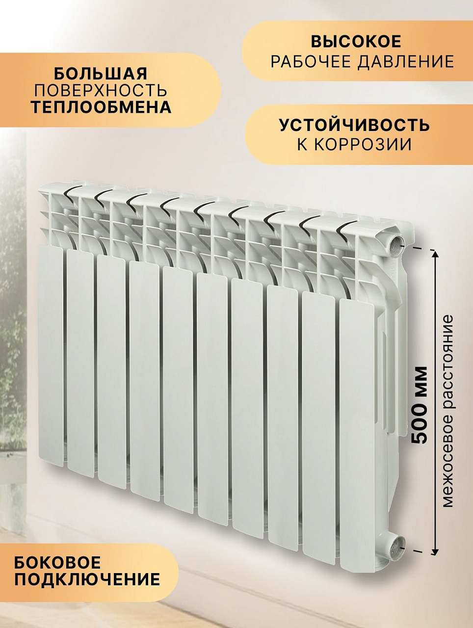 Биметаллический радиатор предназначен для применения в качестве отопительного прибора в системах водяного отопления жилых, общественных и промышленных зданий.