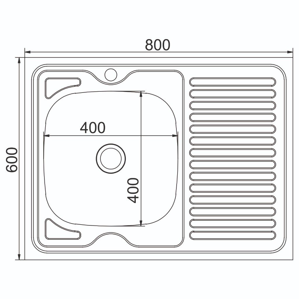 - Просторная чаша 80х60 см из нержавеющей стали 0.4 мм обеспечивает долговечность и устойчивость к коррозии.