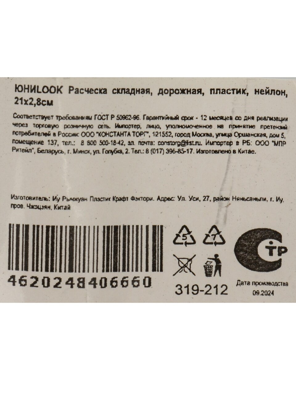 Вы можете приобрести «Расческа складная, 21х2.8 см, пластик, нейлон, в ассортименте, ЮниLook, 319-212» и другие товары в нашем интернет-магазине в Старом Осколе по низким ценам и с бесплатным самовывозом.