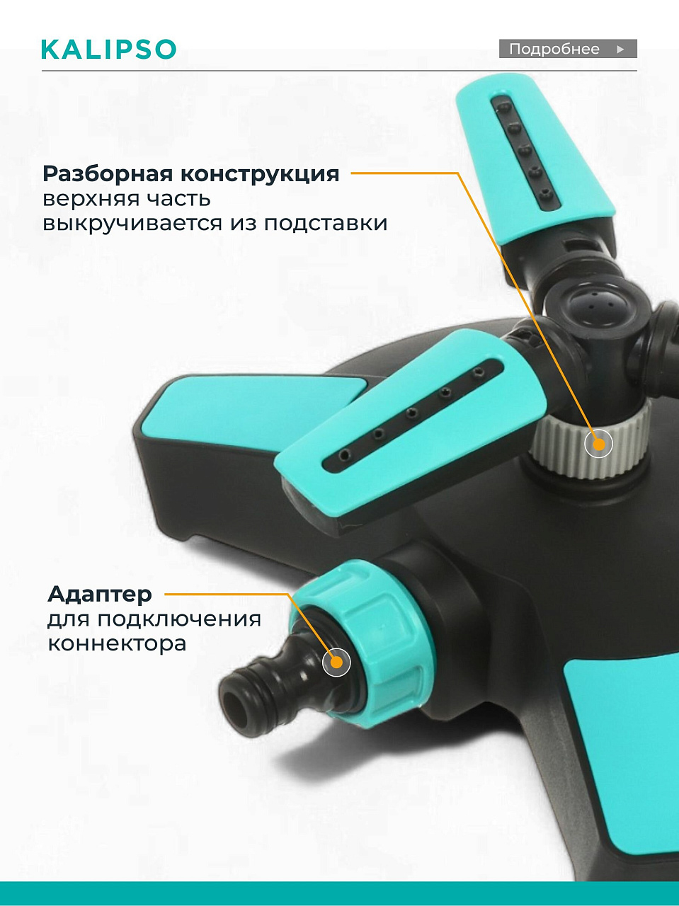 Вы можете приобрести «Разбрызгиватель трехлистовой, вращающийся, стационарный, быстросъемный, Kalipso, DY6064G» и другие товары в нашем интернет-магазине в Курске по низким ценам и с бесплатным самовывозом.