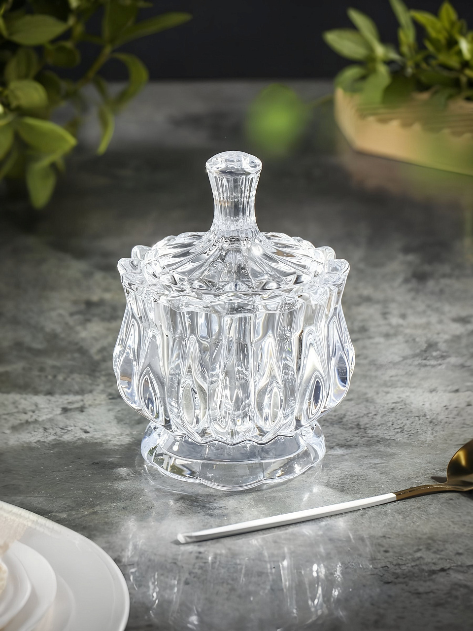 Сахарница из прозрачного стекла объемом 140 мл идеально дополнит кухонный интерьер и обеспечит удобство хранения сахара. Компактные размеры 11х11х7.5 см позволяют разместить аксессуар даже на небольшой полке. Благодаря крышке содержимое защищено от влаги и пыли. Прозрачный дизайн гармонирует с любой посудой и легко впишется в современный или классический стиль кухни.