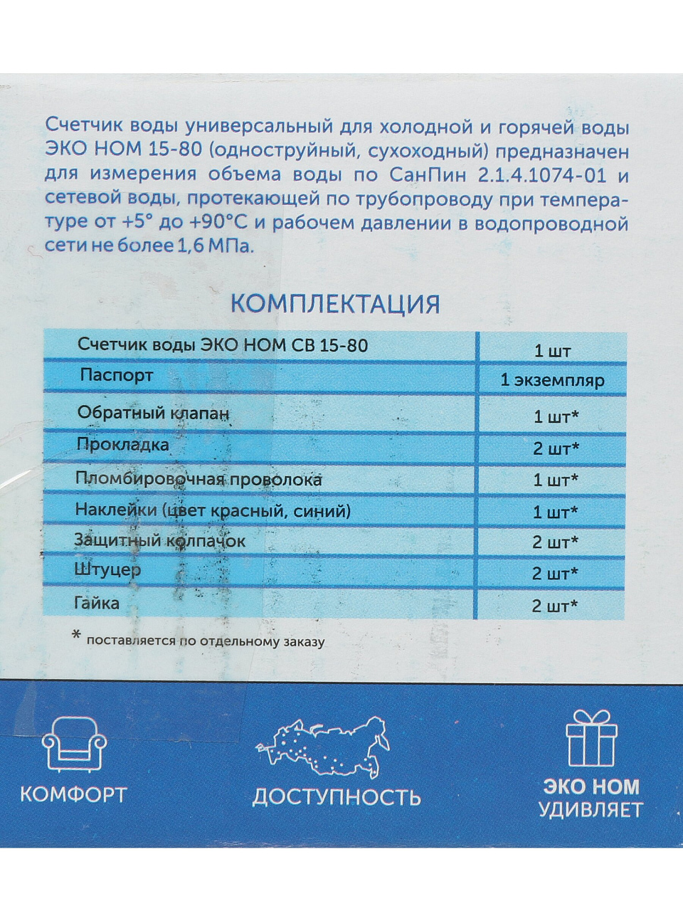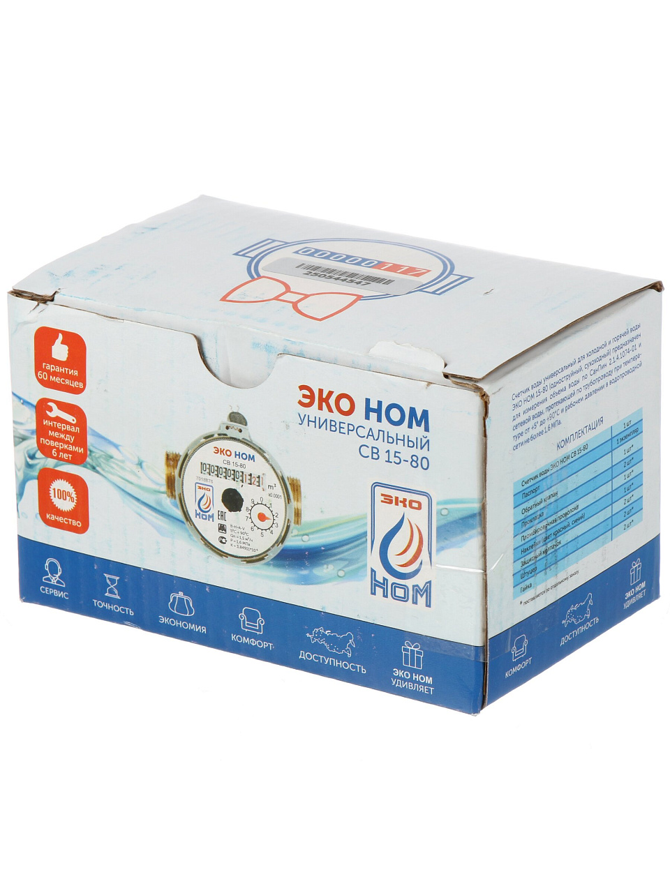 Вы можете приобрести «Счетчик воды универсальный, без монтажного комплекта, 5 лет, ЭКО НОМ, СВ 15-80» и другие товары в нашем интернет-магазине в Обнинске по низким ценам и с бесплатным самовывозом.