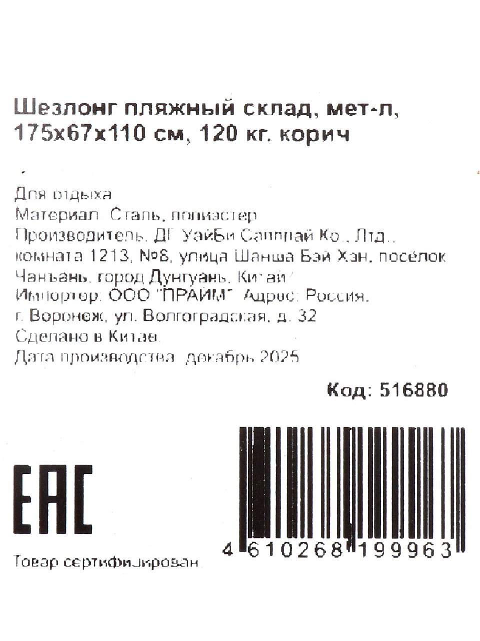 Вы можете приобрести «Шезлонг пляжный склад, мет-л, 175х67х110 см, 120 кг, корич» и другие товары в нашем интернет-магазине в Ставрополе по низким ценам и с бесплатным самовывозом.