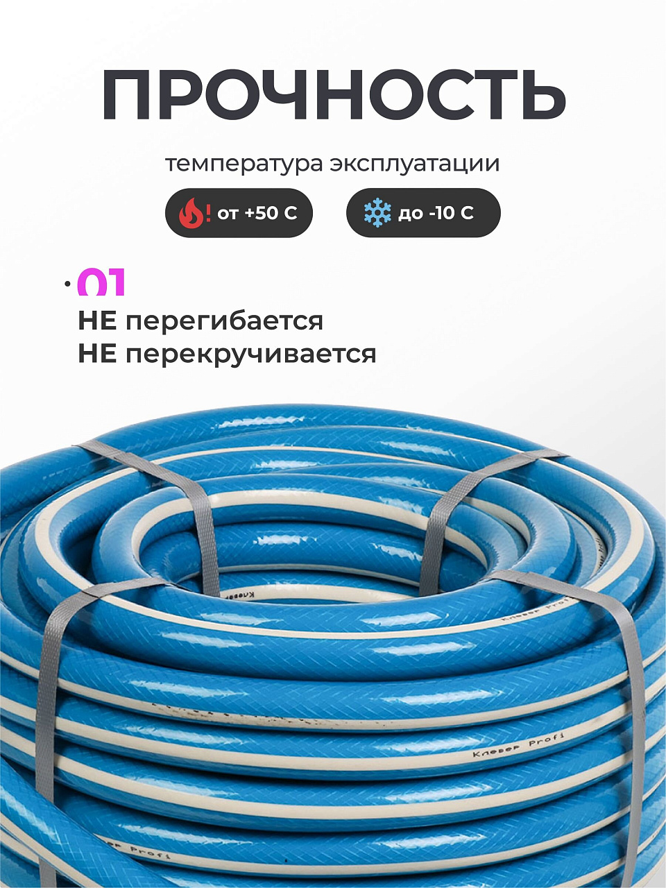 - Сверхпрочный поливочный шланг профессионального качества.